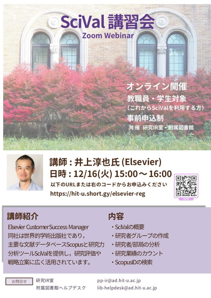 【12月16日開催】SciVal講習会開催のお知らせ(事前申込制)